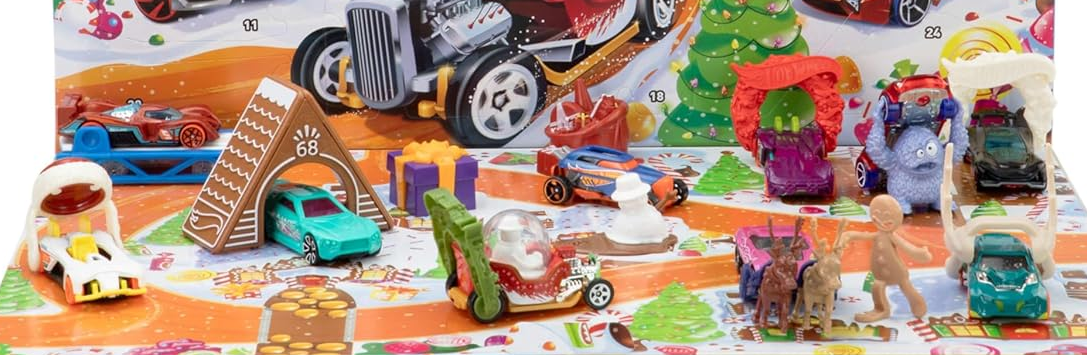 Подарите себе праздничное настроение с адвент-календарем Hot Wheels на Новый 2026 год. За каждой из 24 дверей находится игрушечная машинка в масштабе 1:64 или какой-нибудь аксессуар, вдохновляющий на зимние приключения. Всего в набор входит 34 предмета: 10 автомобилей, один из которых является эксклюзивным для этого набора; 10 зажимов-украшений для демонстрации каждого автомобиля; и 14 аксессуаров-сюрпризов (таких как снежный человек или пряничный домик).