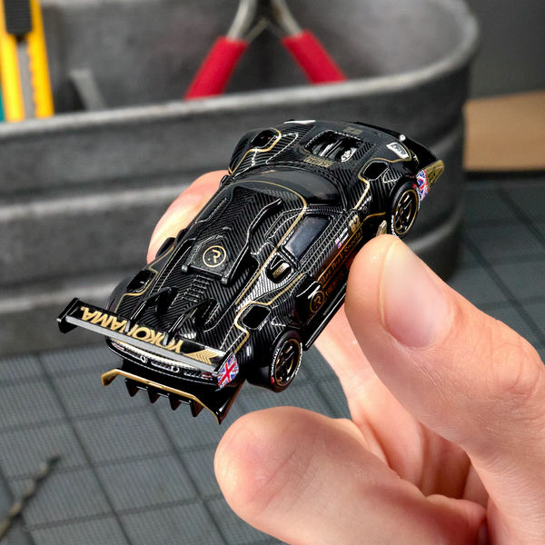 Сверхреалистичная модель гиперкара состоит из более чем 20 отдельных деталей, а тщательно проработанный дизайн соответствует окраске автомобиля, который финишировал менее чем за 10 минут - в своей уникальной гонке к облакам.