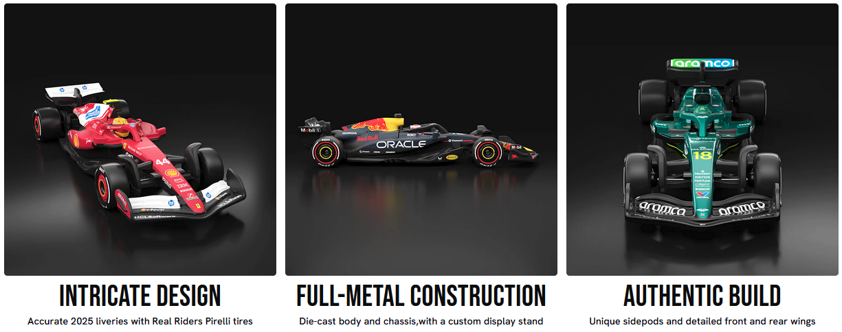 С добавлением в коллекцию Scuderia Ferrari HP и Aston Martin Aramco Formula One Team поклонники каждой команды, участвующей в гонках, теперь могут по-новому взглянуть на Формулу-1, выбрав своего любимого гонщика или играя со своей любимой командой и новыми автомобилями 2025 года, воссозданными в масштабе 1:64 с аутентичным дизайном