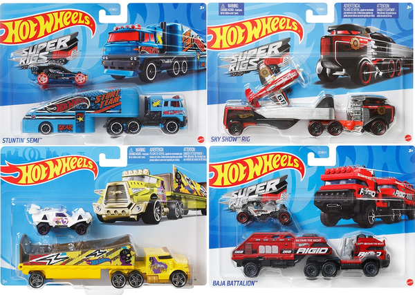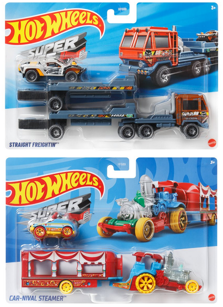 Собирайтесь и отправляйтесь в путь на супермобилях Hot Wheels! В серии Hot Wheels Super Hauling Rig and Car 2026 года представлены: