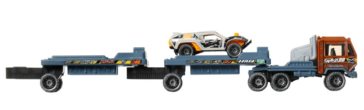 В этом наборе в масштабе 1:64 представлены тягач и соответствующий ему автомобиль Hot Wheels, которые можно использовать вместе для создания эпических сюжетных приключений. Машинка помещается в багажнике транспортера, так что дети могут катать ее, как настоящую гоночную команду. Машинка совместима даже с трассами Hot Wheels. (Трасса продается отдельно). Оба транспортных средства отличаются динамичной детализацией, что выделяет их из любой коллекции – они идеально подходят для игр или показа.