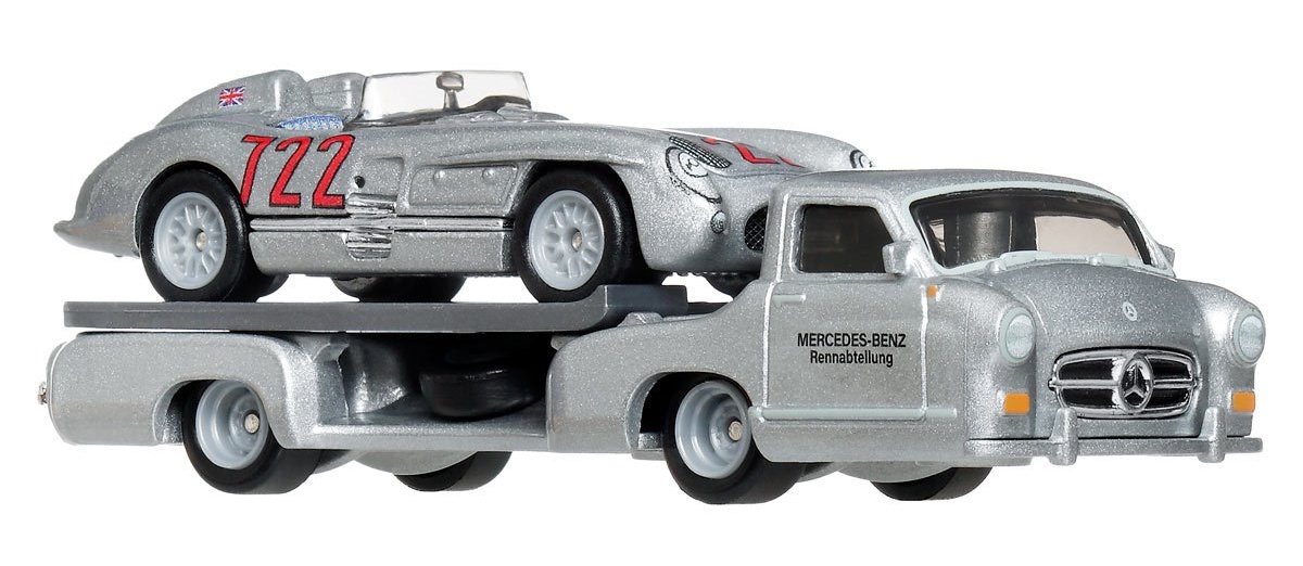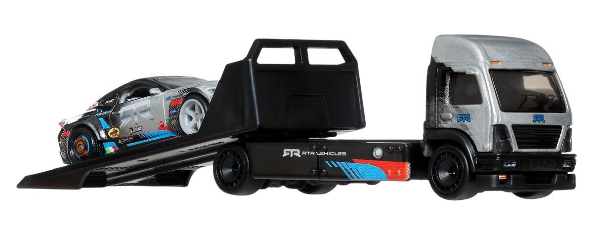 Этот комплект из автомобиля и тягача Hot Wheels в масштабе 1:64 просто необходим взрослым коллекционерам и любителям гонок. Командный транспортер может загружаться и разгружаться, к нему прилагается комплектующий автомобиль.