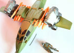 И вид снизу. Пластик очень крепкий, подвижные детали, верёвка для пилота (можно втягивать фигурку в самолёт и отпускать).