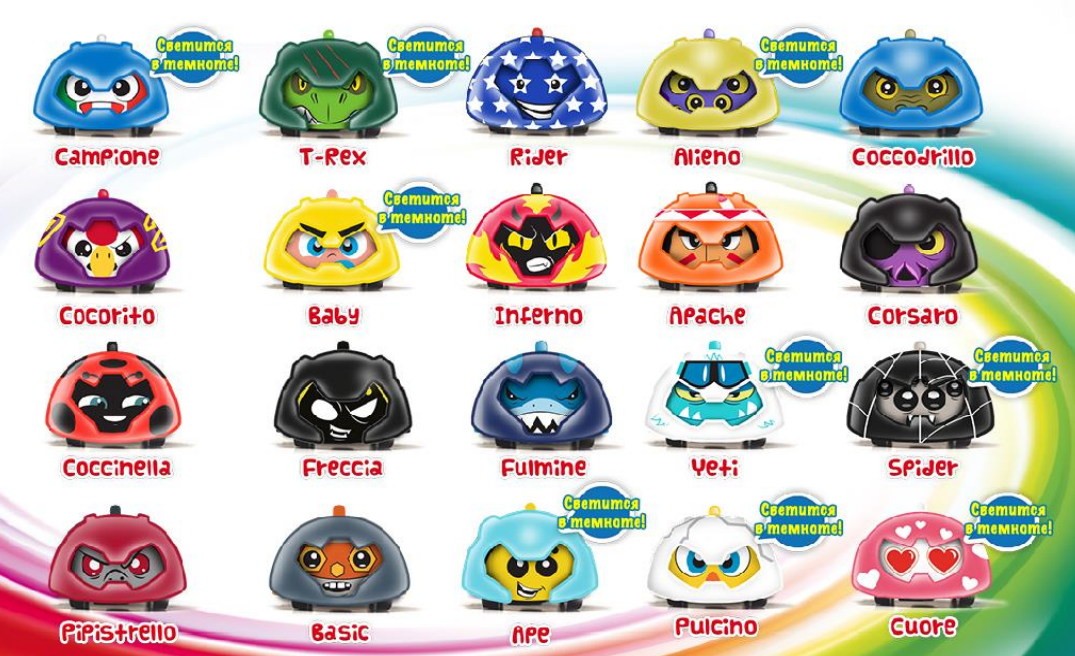Коллекция машинок. Состоит из 20 фигурок. Это новые SPINNY 2 EVOLUTION с новинкой - шлемом SPINNY HELMET в комплекте! Эти машинки становятся самыми сумасшедшими волчками в мире. Попробуйте закрутить один волчок на другом: какую башню вы сможете собрать? 3 волчка, 4, или, может быть, даже 5?