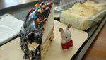 Убранство стола, также очень тематическое. И так сильно отличается от уюта царящего на ваших снимках в обычное время. Все эти брелоки, кабошоны ? Отдельно спасибо, за пауков, у меня арахнофобия, так что вайб ужаса навели. Чудесная кошачья кровать . Куколки тоже великолепно поддерживают атмосферу. А мышка... у меня была такая в 1996! В пакетике с надписью I love u. У милым букетиком в лапках. В начале нулевых мы с братом отдали свои игрушки в детский сад. Наша семья переезжала в другой город.