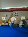 Я тоже раньше садик делала поменьше. Но как обустроила большой дом со светом, так больше и не перестраиваю его. Там ещё на полке второе здание стоит, для совсем маленьких