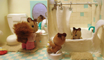 В общем, по ситуации. Есть немного плеймобиль, лежит отдельно, но куколки от него и посуда иногда у сильвашек остается в домиках.