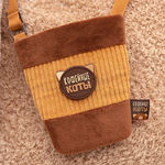 Большой кофейный кот Латте из тактильно приятного экомеха в трех оттенках: молочного какао, топленого молока и белоснежной молочной пенки. Пяточки из софта цвета сливочного крема, а внутри ушек софт сливочного и карамельного цветов. Под мордочкой у кота вшиты два лейбла с именем кота и трогательным хештегом #ктотутсамыйнежный. У кота Латте интересный аксессуар - сумочка в виде кофейного стакана на длинном ремешке. Сумочка сшита из софта кофейного цвета и вельвета крафтового цвета. На сумочку пришит силиконовый лейбл.
