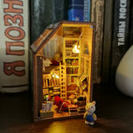 Там на целый городок домиков, и у каждого свой житель и своя тема. 😊Собирать, конечно, нелегко из-за мелкого масштаба, зато они смотрятся чудесно и занимают совсем мало места на полке.