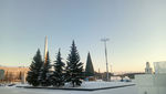 ИгрушкиЁлочка у парка Космос. Вечером с красной звездой на верхушке вы ее уже видели. За ней бело-красное здание это наш ледовый дворец. Я в нем ни разу не была, хотя обожаю кататься на коньках. Но там для массовых катаний очень мало времени выделено. В нем тренировки идут у ребят, которые ходят в секции и берут индивидуальные занятия.