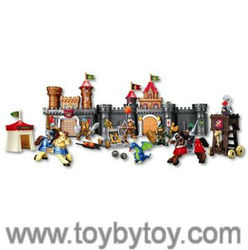 Игровой набор "Королевский Замок" в тематике средневековья: подвиги отважных рыцарей, старинные замки, сказочные драконы. Здесь - описание современного варианты (2011 год), у меня есть подобный набор, купленный в начале 2000-х годов: катапульта до сих пор сохранилась и работает, и фигурки тоже (только краска чуть облезла), а вот стены замка давно ушли в песочницу - хотя и там они прожили не один год. Так что игрушка качественная.