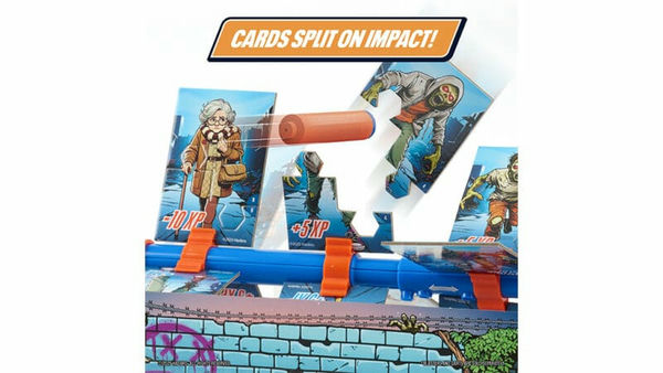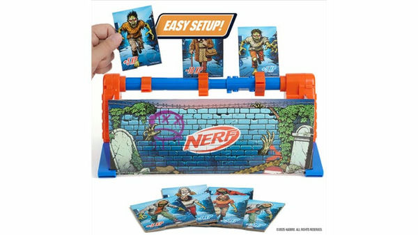NERF Zombie Spin Strike от Wilder Toys - это эпическая игрушка, которая усиливает веселье от игры с NERF-бластерами. Дети в возрасте от 8 лет и старше помещают карточки с зомби на вращающуюся рамку NERF Zombie Strike, а затем выбирают один из трех режимов скорости: 15-секундное медленное вращение, 30-секундное быстрое вращение или 20-секундный режим с переменной скоростью. Затем берем бластеры и дротики NERF, чтобы сбивать карты зомби на вращающейся раме. Карты легко распадаются при ударе, что облегчает забивание очков и сброс.