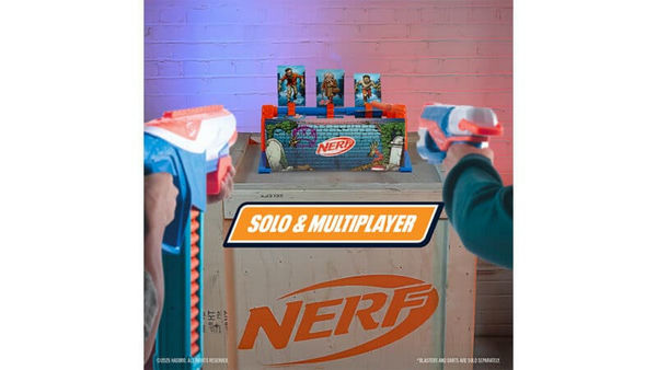 Бластеры Hasbro NERF и другие аксессуары продаются отдельно. Перед началом игры родители должны убедиться, что они вставили в рамку 3 батарейки типа ААА и что в игровом пространстве нет никаких бьющихся предметов.