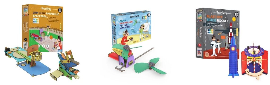 Детали Smartivity изготавливаются из дерева с помощью лазерной резки. Сборные модели предлагают широкий выбор конструкций, от автомобилей до музыкальных машин и роботов. Наборы предназначены для детей в возрасте от шести лет и старше.