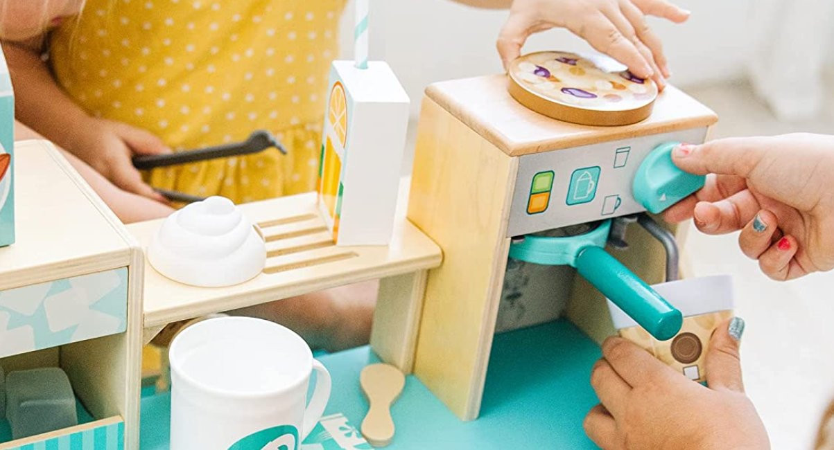 Дети полюбят капуччино и латте благодаря игровым возможностям деревянного магазинчика-кофейни Cafe Barista от Melissa and Doug.