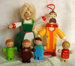 У меня ещё четыре деревянных человечка PlanToys имеется, раньше считали что там двое взрослых и двое деток, теперь они все стали детишками для этой новой замечательной парочки. :-) Деревянные куклы по мультику Три богатыря и Шамаханская царица - Князь и Настасья Филипповна.